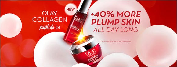 Many products on the market include collagen as an ingredient, which is a molecule too big to penetrate skin, meaning it will remain on the skin's surface where it provides limited benefits. Olay Collagen Peptide24 is optimized with its powerhouse peptide formula, featuring small molecules that can penetrate the skin's surface due to superior formulation. The collagen peptide is then able to activate the skin collagen by mimicking and working like our naturally occurring collagen for hydrated and firm skin. While regular Collagen remains on skin’s surface levels, it is proven that Olay Collagen Peptide 24 penetrates up to 40% deeper into skin as compared to regular Collagen.